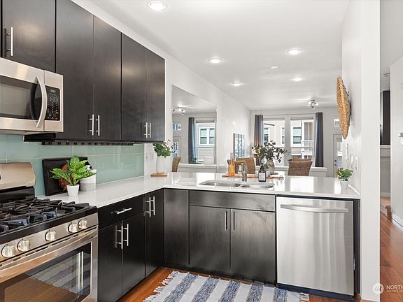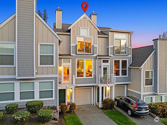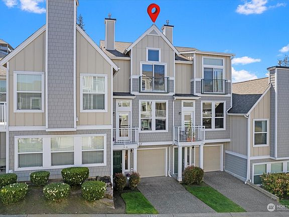 Exceptional Value! The Villas at Harbour Pointe are located close to the mesmerizing Puget Sound! This stunning townhome is ready for its new owners to enjoy. Rich bamboo floors throughout the main. Modern chef's kitchen with quartz countertops, gas cooktop + stainless appliances. Formal dining space flows effortlessly to the living room w/ vaulted ceilings, gas fireplace flanked by built-ins + a balcony with a view! Upper level boasts primary suite with vaulted ceilings, en-suite bath, 2 closets and a 2nd balcony with views; 2nd bedroom with its own walk-in closet, full bath and laundry. 2 car tandem garage with storage. Guest parking is across from the unit. Minutes to the ferry, airport & shopping. Pet friendly! Must see!