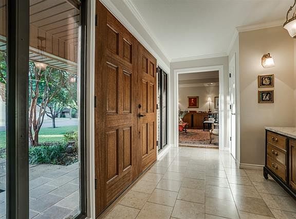 Open floor plan, vaulted ceilings, skylights, big windows, hardwoods, art niches, built-ins, dimmable LEDs. Large remodeled kitchen, SS appliances, island, breakfast bar, pullouts, great storage. Remodeled baths, stone, jet tub. Great for inside & outside entertaining. Heated pool & patio resurfaced. Landscape lights. Big shed has power, lights, windows. Expanded in 2000 (DCAD says effectively built in 2000.) Renovated by Rogers Residential LLC.