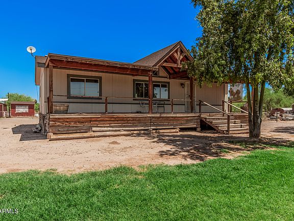 Check out this 3-bedroom manufactured home that is finally on the market! This sprawling 2.7-acre horse property greets you with a welcoming front porch where you can spend quiet morning coffee. Inside, you'll find a large living room featuring bountiful natural light and vaulted ceilings that add to the airy feel. The lovely eat-in kitchen displays white cabinets with crown moulding, built-in appliances, a center island, and a handy pantry. The sizable primary bedroom is complete with a walk-in closet, a private bathroom with dual sinks, and a soaking tub. For convenience, a washer and dryer are included. Enjoy relaxing on the cozy deck while sipping your favorite drink. PLUS! The massive backyard offers storage sheds, stalls, and ample space for horses to roam. Don't miss it!