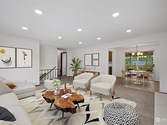 Experience the perfect blend of space, functionality & comfort in this thoughtfully designed Silver Lake home. The upper level features a bright & inviting living room w/ stylish electric fireplace. The lower level has a flexible rec room & 3/4 bath offering an ideal setup for guests, home office & media room. Step outside to the covered back deck for year-round enjoyment & entertaining. The expansive, flat backyard complete with a cozy fire pit area & garden space. With an oversized 2-car garage perfect for a workshop and an additional carport for extra covered parking, there’s no shortage of storage or hobby space. Home equipped with newer furnace and A/C! Pre inspected for your peace of mind. *Some photos are virtually staged*