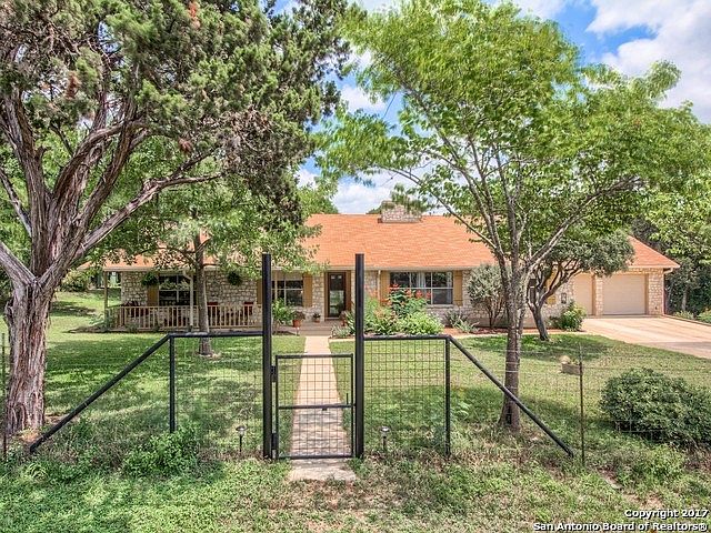MAGNIFICENT MINI-RANCH ON 2 TREE-COVERED ACRES! PROFESSIONALLY UPDATED! DETACHED BARN, 2nd GARAGE/WORKSHOP,AND STUDIO! CROSS-FENCED PLUS ARENA! DUAL MASTERS! MASTER RETREAT WITH HIS N HERS CLOSETS, DOOR TO CVD PATIO! TWO FIREPLACES! FAMILY ROOM FEATURES WET BAR! DREAM ISLAND KITCHEN WITH CUSTOM CABINETRY & BLT-INS, GRANITE COUNTERS, GAS COOKTOP! FULL BATH IN GARAGE! BUTLERS' PANTRY! HUGE DECK WITH GAZEBO! MUCH MORE! HELOTES FOR LOW TAXES, EXCELLENT SERVICES! FARM ANIMALS OK (NO PIGS)! NO HOA!!!