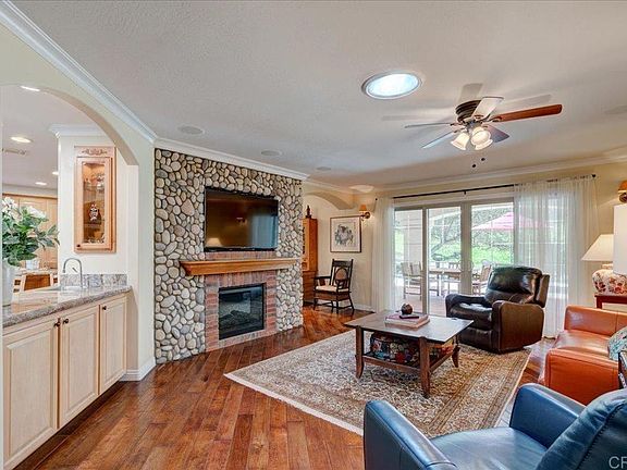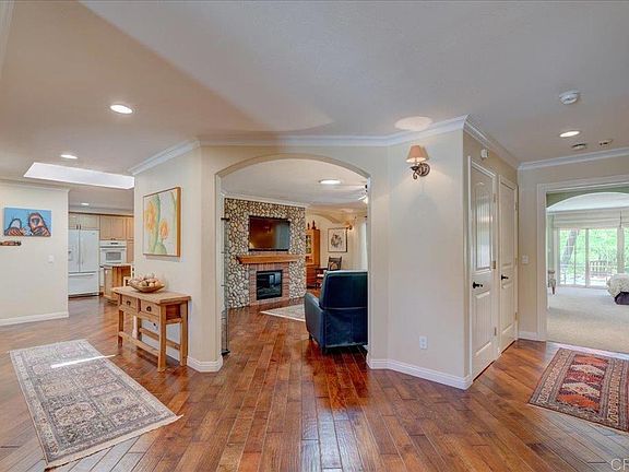 Welcome to 11009 Meadow Glen Way E, a Single Story, beautifully upgraded home nestled in the North County foothills overlooking Boulder Oaks Golf Course. Located within the peaceful community of Hidden Meadows this well appointed home boasts pride of ownership that is found in the top of the line materials & custom upgrades throughout. A spacious kitchen highlights custom cabinetry, granite countertops, a large center island, kitchen nook with built-in work space/office area & dimmable recessed lighting. Beautiful wood flooring in all main living areas seamlessly flows into a custom marble accent at the entry along with new carpeting in all bedrooms. The primary bedroom captures views of the golf course with sliding doors that lead you to an private above ground spa. The upscale primary ensuite highlights a huge walk in double shower, dual sink vanity, spacious closet with lots of drawers & shelves. Secondary bedrooms are separated by a jack & jill bathroom with tub/shower combo & dual sink vanity. Several skylights & solar tubes allow natural light to stream into the hallways, bathrooms & kitchen. Step outside onto a large covered patio perfect for entertaining & relaxing in the shaded outdoors while listening to the natural sounds of a cascading waterfall. Built in BBQ with refrigerator, recessed patio lighting & ceiling fans. Beautiful mature landscaping shade peaceful sitting areas with cool breezes. New energy efficient HVAC Carrier central heat & air system & water heater both installed in 2023, spacious 3 car garage with epoxied floor, workbench & lots of storage. Low maintenance artificial turf both front & back yards, leased solar (to be assumed by buyer) for an all electric home allows for lots of yearly savings. Low HOA only $27 per month ($330 yr) gives you access to community pool, tennis courts & common picnic areas.