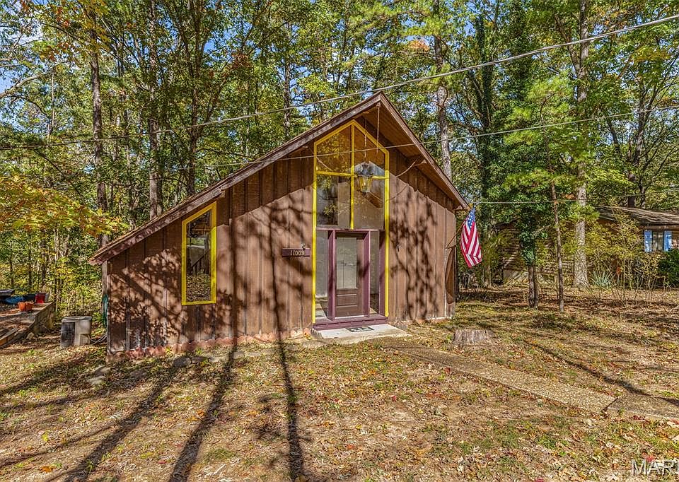 Welcome to your perfect getaway! This adorable 2-bedroom, 1-bath A-frame cabin offers the ideal mix of rustic charm and modern comfort—whether you’re seeking a relaxing weekend retreat, summer vacation spot, or a cozy first home. Step inside to find soaring vaulted ceilings and original hardwood floors that create a warm, inviting atmosphere. The bright eat-in kitchen opens to a spacious main-level deck, perfect for sipping morning coffee or entertaining friends on summer evenings. The main floor includes a comfortable bedroom and full bath, while the upstairs loft bedroom features new carpet and access to a private deck with peaceful views of the wooded backyard—an ideal space for relaxing or reading. This home backs to trees for added privacy and a true nature-lover’s feel. Recent updates include new plumbing, a new installed shower, newer water heater, newer stove, new doors, new carpet in the loft, and a full professional clean—making this home move-in ready for its next owner! Located in the highly sought-after Grayhawk community, residents enjoy access to two scenic lakes for fishing, boating, and swimming, a large community pool, ATV and UTV trails, and a full calendar of fun community events and activities. Whether you’re looking for a peaceful weekend escape or a new place to call home, this cabin has it all!