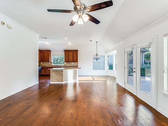 Super clean Augusta floor plan in the Active Adult Community of Robson Ranch. This home has just been painted and professionally cleaned! All you have to do is bring your things. Updated fans and door hardware. Bedrooms have carpet, tile in the wet areas then beautiful medium brown engineered hardwood in the rest of the home. Enjoy the kitchen with a lovely granite that matches the cabinetry perfectly. Step out back to a gorgeous partially covered patio, landscaping and a fenced in yard. The yard has 2 big trees in the back and 1 in front with several beds freshly mulched and refreshed. There is a convenient free standing sink in the garage to help with your projects. Robson Ranch is home to a challenging 27 hole golf course called Wildhorse Golf Club. The community HOA fees cover all of the other amenities including pickleball, fitness center, indoor and outdoor pools. Also included is the Community Activity Center that houses the library, woodshop, ceramics studio, art studio, tech center and even a bank!
