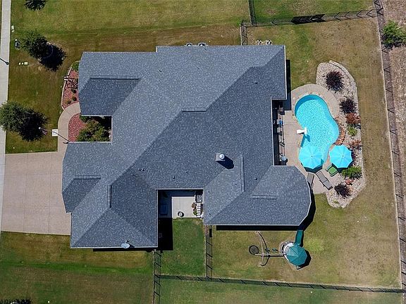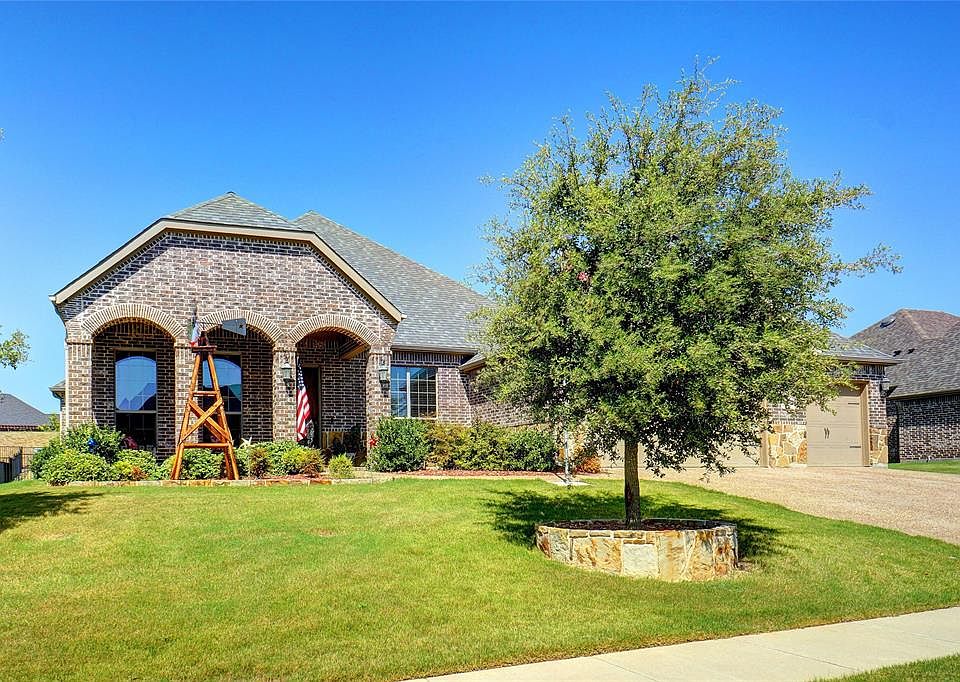 Beautiful custom home with 5 bedrooms, 3 baths, ONE-story home with huge chef's kitchen plus island, granite countertops and stainless appliances. The living area is very spacious w-a wall of windows offering great views of the saltwater pool & Texas sunsets. Master bedroom has a lovely rounded wall also w-lots of windows & views of the amazing sunsets. The large master bath has beautiful furniture vanities & is very roomy for those busy mornings. The location of this home is out among the rolling hills of North Ft Worth, in the desired EMSISD, is close to Eagle Mountain Lake and State Park. Comm pool, playgound, pavilion, ponds stocked with fish! This is the one you've been waiting for!
