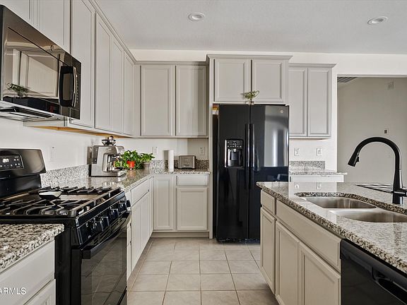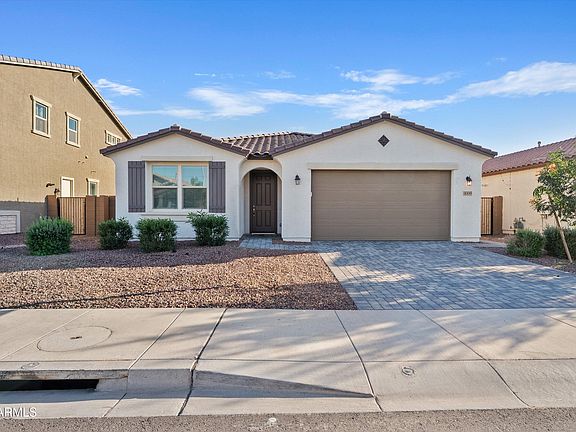 Welcome home! Gorgeous and spacious open floor plan is better than brand new. Turn-key ready, this 4 bedroom, 3 bath home has you covered with almost 2100 square feet of comfortable living. Both the primary bedroom and one on the secondary bedrooms are ensuite for added privacy. The home includes upgraded white cabinets and stunning granite countertops with large island for additional dining or entertaining, roomy walk-in pantry, a generous laundry room, easy care neutral tile, wood slatted window coverings and tons of storage. The newly completed yard features beautiful pavers and a lush synthetic, no hassle lawn and festive patio lighting. Minutes from top choice shopping, trails, schools, parks & golf. You will love living here!