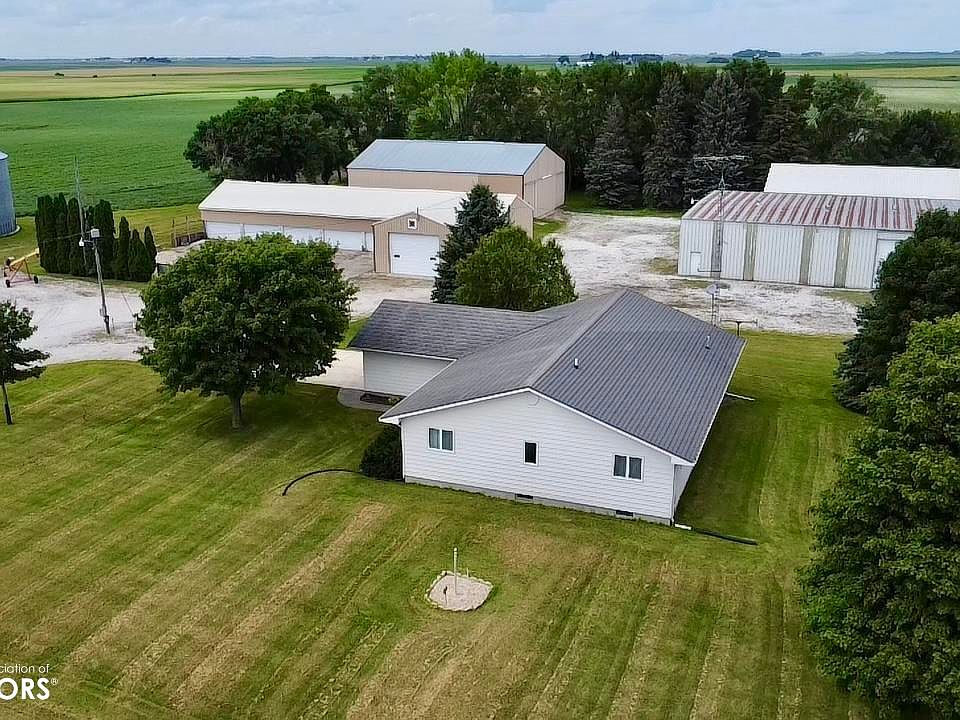 Opportunity of a lifetime! Acreages like these do not come along but once in a generation. Ranch style house on a hard surface road, 4.5 acres M/L, with 4 different outbuildings (see measurements below) & 5 grain bins. The house features 3 bedrooms, 2 bathrooms, 2 stall attached garage, family room, dining room, formal dining, and formal sitting room. Also on the main level is the laundry/mudroom, and an office. The basement is unfinished, but provides ample storage space. The home has had high quality steel shingles installed (50 year + shingle). Outside, there are multiple machine sheds as well as a shop with powerwashing bay. Located just a mile west of Burt. Do Not miss your opportunity, call today and schedule your tour! Outbuilding measurements- Northeast "Cleary" building has full concrete floor measuring 40'x60', Northwest "Morton" building measures 50'x75'x18' sidewall. dirt floor. East building north of house measures 60'x75' & has full span steel trusses. Grain Bin -48' 38,000 Bushel capicity.