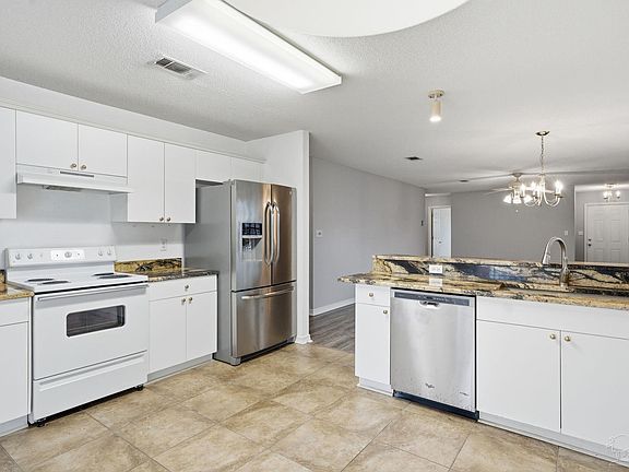 Beautifully maintained home situated on a spacious corner lot, offering both curb appeal and convenience. This property is ideally located just minutes from Perdido Key, NAS Pensacola, the Naval Hospital, and downtown Pensacola—placing shopping, dining, beaches, and major employers within easy reach. Exterior Features: Dimensional shingle roof replaced in 2019 for long-term durability Updated windows and doors installed in 2015 for improved energy efficiency and aesthetics Hurricane shutters for added peace of mind during storm season Fully fenced backyard providing privacy and a great space for pets, outdoor gatherings, or gardening Storage shed offering additional space for tools and equipment Fresh exterior trim updates, enhancing the home’s overall appearance Interior Highlights: The home’s interior showcases an open-concept layout designed for modern living. The spacious primary bedroom includes a well-appointed en-suite bathroom featuring a generous walk-in closet, relaxing garden tub, and double vanity. Located in a clean, well-kept community with no HOA, this property allows you to enjoy the neighborhood’s charm and pride of ownership without restrictive fees. With its desirable location, thoughtful updates, and inviting layout, this home is an excellent opportunity for comfortable and convenient Gulf Coast living.