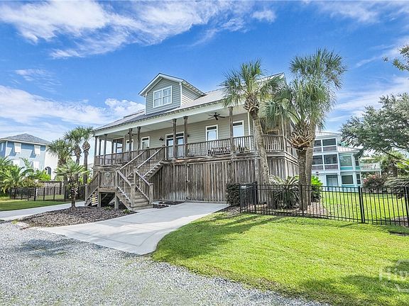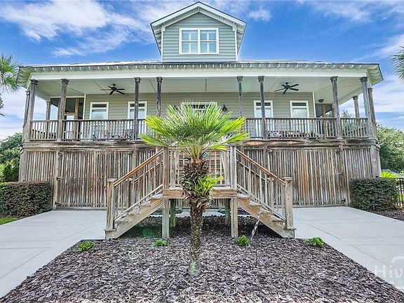This remarkably constructed home was built with comfort, views and breezes in mind. The main level has an open floor plan with LR, DR, and gourmet kitchen. There are granite counters with a kitchen bar. Bamboo floors throughout and a wood burning fp for those cool evenings. There is access to porches from the front door as well as side door in dining area. There are 2 guest br’s with Jack & Jill bath as well as a laundry rm and powder bath. Open wide stairwell to top level where the master suite has a large bedroom as well as sitting/office area and high end carpet throughout! There is a pvt deck with views of shipping channel, Hilton Head and Daufuskie. Master bath has a jacuzzi and a separate enclosed shower. There is Marble flooring in master bath. Main level has wrap around porch with two separate screened areas on each side of home. Double enclosed garage as well as a storage area and room for golf cart. All property totally enclosed with upscale fencing. Yard on either side of house large enough for nice sized pool. Only steps to beach with a deeded walking easement to ocean.