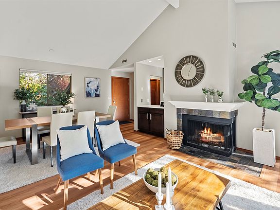 This top-floor 2-bedroom, 2-bath condo is nestled on 14 acres of park-like green space while being conveniently close to light rail, I-90, and I-405. Abundant natural light fills the space, highlighting lofty ceilings, new luxury vinyl plank (LVP) flooring, and fresh carpet. The inviting living room features a cozy fireplace, perfect for relaxing evenings. The primary bedroom includes a walk-in closet and a private ensuite bathroom. Enjoy the convenience of a shared garage with storage and a dedicated parking spot. Community amenities include a clubhouse, outdoor pool and spa, and sports courts. With no rental cap and no pet restrictions, this property offers incredible flexibility for homeowners and investors.