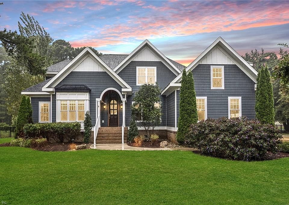 Stunning 6 bed, 4 bath custom waterfront home offering over 4,500 sq. ft. of living space in one of Virginia Beach’s most sought-after neighborhoods and school districts. Enjoy a gourmet chef’s kitchen with gas range, oversized island, granite countertops, and walk-in pantry. The open layout flows into a spacious family room with soaring ceilings, gas fireplace, and elegant hardwood floors. The 1st floor primary suite features a spa-like bath with dual vanities and a large custom-tiled shower. Upstairs offers spacious bedrooms, a finished room over the garage, and walk-in attic for incredible storage and versatility. Relax year-round on the vaulted, covered back porch. The wooded 1-acre corner lot includes a black aluminum fence and plenty of room for outdoor entertaining. Go fishing or launch a kayak from your backyard! Bonus highlights: oversized 2-car garage plus separate 1-car garage. Prime location near Town Center with easy access to beaches and military bases.
