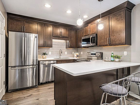 Updated End Unit Townhome in Carlyle Square! Perfectly positioned in this Gated West Midtown Community, this home combines modern updates with unbeatable location. Step inside to discover Thoughtful Upgrades throughout, including a Renovated Kitchen featuring High-End Vinyl Flooring, Granite Countertops, Stained Cabinets to the Ceiling, Stainless Steel Appliances, Chic Subway Tile Backsplash, and a convenient Breakfast Bar. The Open-Concept Living and Dining Area feels bright and inviting with a Fireside Feature Wall, Floating Shelves, and plenty of Natural Light. French Doors open to your Private Patio ideal for Morning Coffee, Evening Cocktails, or easy access to the Courtyard for your pup. A stylish Half Bath completes the Main Level. Upstairs, you'll find Two Spacious Bedrooms and a Fully Renovated Bathroom boasting a Tiled Glass Shower, Extended Stone Vanity with ample Storage, and Tiled Flooring. Community Highlights include a Saltwater Pool, Renovated Fitness Center, and beautifully landscaped grounds with Mature Trees. Carlyle Square offers the perfect blend of Style, Comfort, and Convenience, just minutes from Publix, Fellini's, Scofflaw Brewing, Chattahoochee Food Works, and Pocket Parks along the Northside BeltLine Trail. Enjoy quick access to GA Tech, Piedmont Hospital, Buckhead, Atlantic Station, and I-75 for easy commuting. Live the best of West Midtown Living minutes to Downtown, Underwood Hills Park, and Bobby Jones Golf Course within one of Atlanta's most sought-after gated communities!