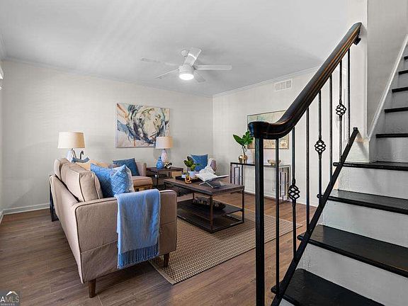 Discover urban convenience in this two-story brick townhouse nestled within a secure gated community in Atlanta. With effortless access to Interstate I-75, you'll be just minutes from the city's vibrant heart, yet tucked away in a peaceful enclave featuring an on-site pool and fitness center. Step inside to a spacious, light-filled living room that welcomes you with an abundance of natural light, perfect for entertaining. The first floor also boasts a convenient half bathroom and an eat-in kitchen. Recently renovated, the kitchen shines with sleek stone countertops, stainless appliances, and ample cabinetry-making meal prep a joy while overlooking the casual dining area. Head upstairs to two bedrooms, each offering plenty of closet space. The renovated master bathroom impresses with a new vanity and tile work. Throughout, high-end vinyl flooring adds a touch of sophistication and durability, while the fenced back patio provides a private outdoor oasis for al fresco dining, gardening, or simply relaxing in privacy. Additional updates include a new HVAC system (2023), ensuring year-round comfort. With plenty of parking right at your doorstep, this townhouse combines low-maintenance living with unbeatable location perks. Whether you're commuting to Midtown, strolling through Buckhead, or dining in Virginia-Highland, everything Atlanta has to offer is at your fingertips within a short drive.