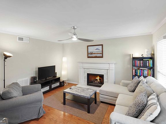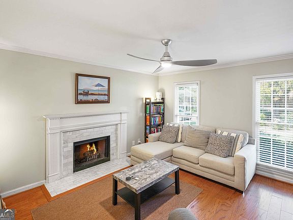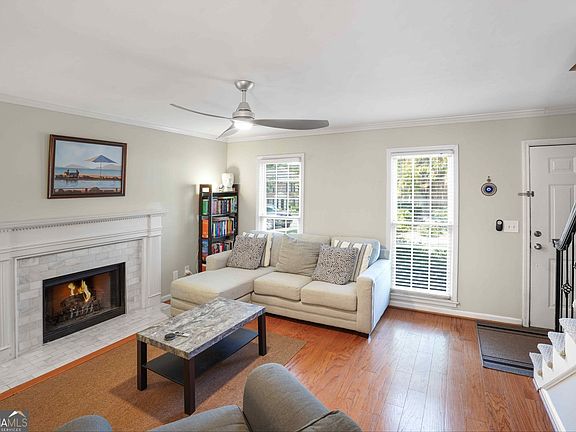 Charming end-unit in a prime location! Nested within a peaceful gated community, this home offers the perfect mix of tranquility and convenience, just minutes from vibrant Atlanta. Walk to grocery stores, restaurants, and shops, or take a short drive to local breweries, parks, and scenic trails. With quick access to I-75, commuting is effortless. This unit features a private entrance and parking shared with only three other buildings, providing extra seclusion. Community amenities include a pool and fitness center. Inside, the main level boasts a cozy fireside living room, a spacious kitchen with adjoining laundry, and a convenient powder room. Just off the kitchen, step onto a private patio with direct parking access. Upstairs, you'll find two bedrooms and a full bath. The primary suite stands out with two walk-in closets. This home beautifully combines comfort, convenience, and city energy, all in one ideal spot!