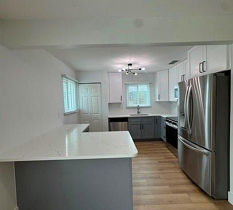 Discover the best of Florida living in this beautifully maintained 2-bedroom, 2-bath home, ideally situated in the heart of Cape Coral. The open-concept layout welcomes you with abundant natural light, vaulted ceilings, and a spacious living area perfect for relaxing or entertaining. The updated kitchen features stainless-steel appliances, granite countertops, and plenty of cabinet space. The primary suite offers a walk-in closet and private en-suite bath with dual vanities and a walk-in shower. The guest bedroom and full guest bath provide comfort and privacy for visitors or can easily serve as a home office. Step through sliding glass doors to your private screened-in lanai and pool area perfect for morning coffee, evening sunsets, or weekend gatherings. The fenced backyard and lush tropical landscaping create a serene, private retreat. Located minutes from downtown Cape Coral, shopping, restaurants, and golf, with convenient access to the Midpoint Bridge for an easy commute into Fort Myers.