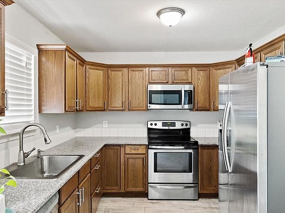 Stainless steel appliancesLight-colored flooringTall windowsNatural lightWalk-in closetWood-look tile