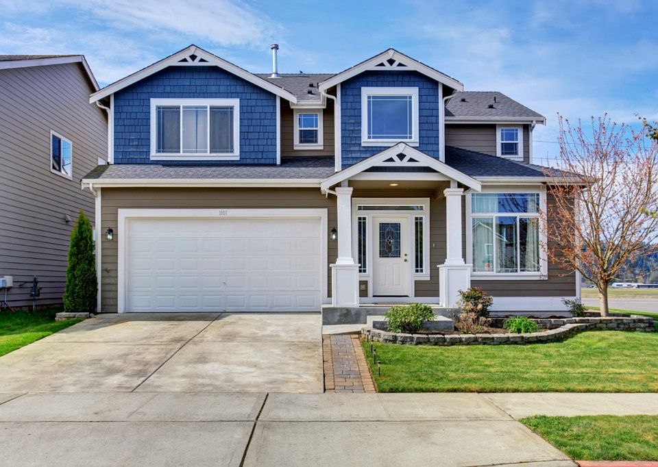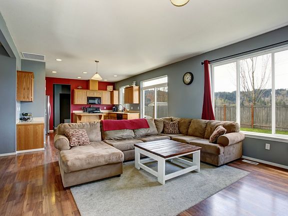 Heres the home youve been waiting for! Inviting corner lot located in Hidden Harbor Sasaki. Lots of large windows allow natural light to filter into this 3 bedroom 2.5 bath home. Theres a large upstairs bonus rm, could be 4th bedroom if closet were added. Enjoy open views from upstairs of the pumpkin/raspberry farmlands and partial Mt. Rainier scenery. Feels so much like home w/its open kitchen to family rm concept w/cozy gas fireplace & large fully fenced in back yard. Come see it today!