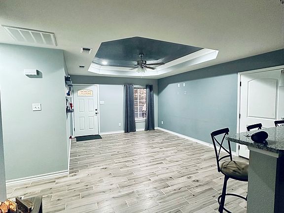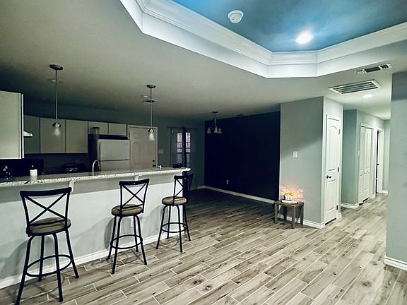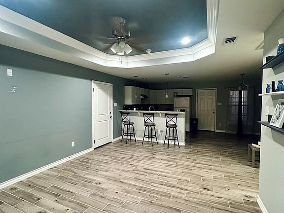 3 bedroom 2 bath house. Home features tile flooring and carpet in bedrooms. Custom venetian painted wall in dining area and ceilings in living and master bedroom.
