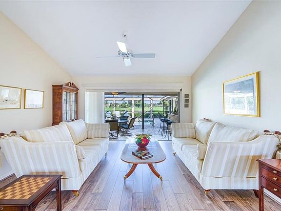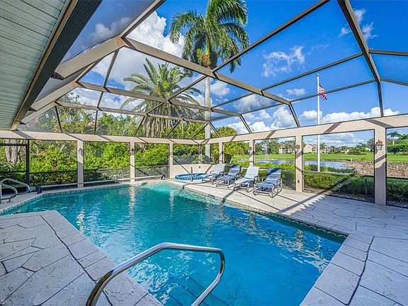 H12756. Enjoy stunning views of the golf course and pond from this pool home in Foxfire with Golf Membership Included! The spacious layout offers 2207 sq. ft. with 3 bedrooms + den, 2 full baths, 2-car garage and separate golf cart storage. Enter the open and bright living area through beautiful double doors and see the spectacular pool deck and golf course beyond. Enjoy the large screened-in lanai with outdoor kitchen, covered sitting area, pool, heated spa and stunning views of the golf course and lake. Plenty of room to entertain with the open family room and spacious kitchen which offers lots of storage space, wall oven and center island with cooktop. The extended den/office features built-ins and a decorative fireplace. Located in the prestigious gated BUNDLED GOLF community of Foxfire with a recently renovated 27-hole Arthur Hills designed golf course and resort amenities. Residents enjoy a beautiful clubhouse with tennis, bocce ball, fitness center, library, pro shop, driving range, swimming pool & bar & grill, social clubs and events, and fine dining restaurant. Located just minutes to downtown Naples with shopping, dining, art galleries, theatre & white sandy Gulf beaches.