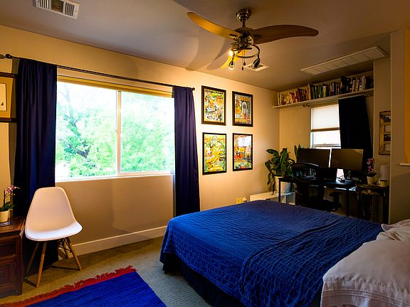 Located directly across from the historic Riverside Country Club with plateau views overlooking downtown Austin, this trail connected space is for you! Located in the Riverside area of South Austin and incredibly close to Roy G Guerrero Park and the River Trail, be right in the middle of the action in this wonderful city. Gated entry for all vehicles and pedestrians. This home has its own gated front patio. Enter through the front patio into a lovely, open-concept living area with abundant natural light which is open to the modern kitchen. Equipped with new stainless steel appliances, track lighting, a tile backsplash and bench seating, this kitchen is perfect for entertaining (drop leaf dining table expands to seat 6). The large fenced front patio is complete with a swinging hammock. The laundry closet has room for storage as well as a stacked washer and dryer. Upstairs you'll find the spacious bedroom which has a lofted feel and a great view and includes an ensuite bathroom with a shower/tub combo. Walk-in closet is 66" x 58" complete with built-in California closets. The property includes a fenced in dog-run, private gym, covered grill area, patio chairs and your own designated, reserved carport space.