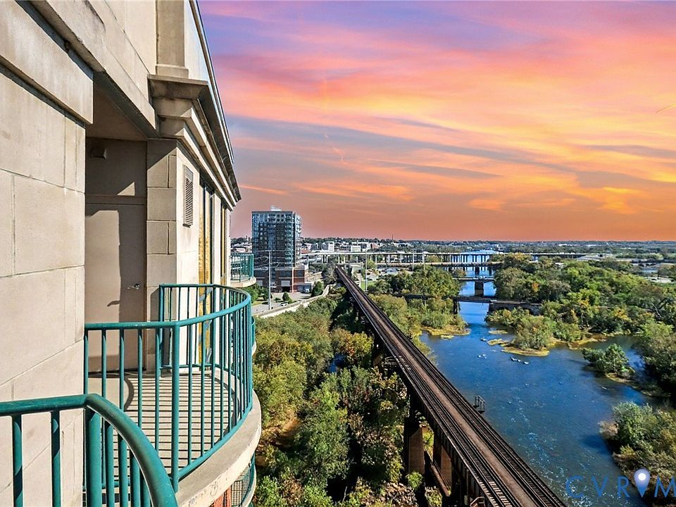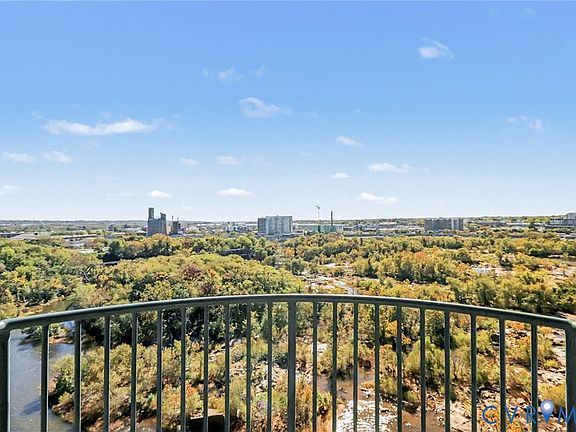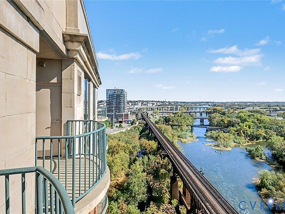 PENTHOUSE condo with stunning views of the historical James River. NEW luxury vinyl plank flooring and fresh paint make this unit turn-key. Located in Riverside on the James, the City's premier urban waterfront building situated on Brown's Island between the James River & the historic Haxall Canal. At 1,546 sq. ft, this unit is one of the largest floorplans downtown. Originally designed as 2 separate units, it was finished as 1 EXTRA LG, QUIET 2 bed, 2 bath unit. The two primary bedrooms with HUGE 9' WINDOWS have breathtaking views, large walk-in closets & en suite baths double vanities. The spacious living & dining areas have sweeping views of downtown. There are also an office/media foyer and two balconies. The kitchen has granite counters w/barstool seating, stainless appliances. This unit comes with 2 DEEDED parking spaces.