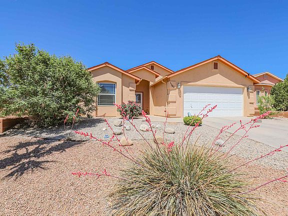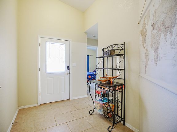 This lovely 3 bedroom, 2 bathroom home is situated on a corner lot with a cozy backyard! Vaulted ceilings make this home feel inviting, with an open concept living and kitchen space. A split floor plan offers 2 bedrooms and a bath and the primary and en suite as well! Thoughtful storage spaces and closets are located throughout the home. Step outside into the backyard with mature landscaping and large fire pit for backyard entertaining! This home is located in the Hermoso El Sol development and offers a neighborhood park!