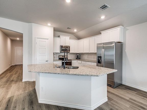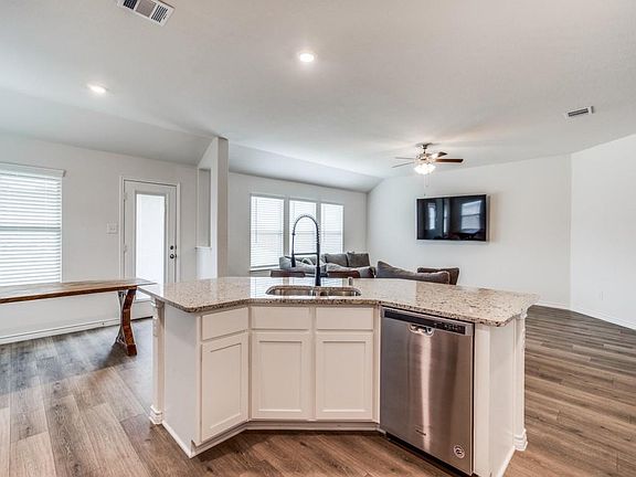 3BR 2 BTH, Kitchen features large island with an open floor plan leading into the living and dining room. Luxury vinyl plank floors and carpet throughout. Master has large ensuite bathroom with fantastic walk in closet. Spacious backyard with privacy and covered patio, a great feature for any dog owner!