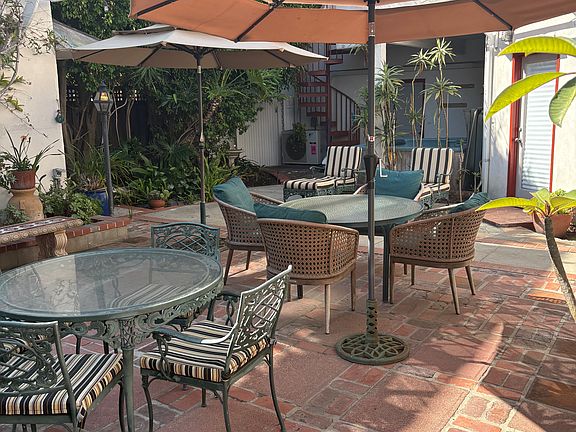 Enjoy the convenience of a spacious driveway that accommodates multiple vehicles. Outdoor living is elevated with a rooftop deck offering stunning views of Center Beach, Point Loma, and the San Diego skyline. The rear patio includes a generous entertaining area complete with a Weber grill and an above-ground spa, perfect for relaxing or hosting guests.