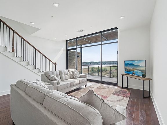 Discover lakeside luxury in Lago Vista! This stunning, never-lived-in two-story waterfront condo offers a seamless blend of style, comfort, and modern elegance. Featuring 2 spacious bedrooms and 2.5 baths, this home impresses with upgraded wood flooring, sleek granite countertops, and stainless steel appliances. Floor-to-ceiling windows capture panoramic views of the cove and main body of Lake Travis, filling the interior with natural light and breathtaking scenery. Step outside and enjoy resort-style amenities designed for relaxation—an infinity-edge pool, outdoor kitchen with TV, cozy fire pit, and beautifully landscaped gathering spaces. With its contemporary design and unbeatable views, this condo delivers the ultimate lakefront lifestyle.