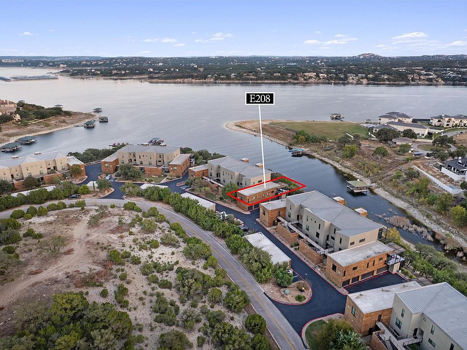 Lake Travis Waterfront Luxury. Fully Furnished Modern Condo Experience lakeside living at its finest in this stunning Lake Travis waterfront condo, offered completely furnished right down to the charming lake-inspired décor. Just bring your suitcase & start enjoying the good life. This modern masterpiece features steel beam construction, concrete, stucco, and warm wood accents, blending contemporary design with natural beauty. The open-concept layout showcases floor-to-ceiling windows that frame breathtaking panoramic views of Lake Travis from the living room, dining area, and kitchen. Step out onto your expansive wraparound deck, where you’ll find an inviting outdoor living and dining area, complete with a BBQ grill—perfect for entertaining or soaking in the views that stretch for miles. Watch the Fourth of July fireworks from “Mattress Mack’s” place across the cove right from your deck. Resort Style Amenities, Neg Edge Pool, Huge 18 person hot tub, Outdoor Kitchen & boat dock access