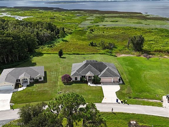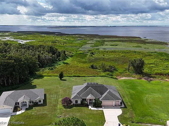 Experience Florida living at its finest in this beautifully designed 2009-built home, perfectly positioned near the shores of Lake Istokpoga. This 4-bedroom, 3-bathroom residence offers a thoughtful layout, including a junior suite with its own bathroom and a privacy door—ideal for guests or extended family. Inside, you’ll find rich hardwood flooring throughout the main areas, complemented by plush carpet in the bedrooms. Elegant archways add architectural charm, while the kitchen is equipped with sleek stainless steel appliances, granite countertops, and a dedicated dining space, perfect for hosting. The master suite features an oversized shower and relaxing soaking tub, creating a private retreat. A versatile den offers endless possibilities... A game room, home office, or an extra space to unwind? You decide! Step outside and take in breathtaking sunset views over the lake, a daily reminder of the natural beauty that surrounds you. From fishing and boating to peaceful evening strolls, this location invites an active, outdoor lifestyle.