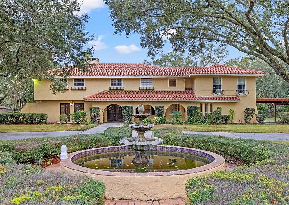 Beautiful Spanish-style estate in the heart of Plant City. Home sits on a beautiful 1.15 acre lot with beautiful trees, a circle driveway, a fountain, and a pergola style carport.This beautiful home has a beautiful long lasting red clay roof (installed in 2017) to give the Spanish Style home a beautiful look. When You approach the front door there is a paved covered front porch. You then enter this elegant home through double french wood doors entering into the foyer. Once entered into the home, you walk into the beautiful staircase to the second floor. From the foyer of the home you enter into large family room or the sitting area with a cozy feeling of a wood burning fireplace. Once entering into the kitchen you have beautiful custom cabinetry through out the entire kitchen. The eat in kitchen offers top of the line appliances from Wolf Gas Range and Thermadore range hood and to top it off Sub Zero double refrigerator. The kitchen has a gorgeous granite top through out the counters and a wood buter block on the island. This kitchen has lots of storage. There is a dining room, sitting room and an office on the first. There is not only one one master bedroom but two. There is a master bedroom on the first floor with a private entrance and full bathroom (can also be used as an in-law suite) and the second master bedroom is on the second floor. The master bedroom on the second floor has room for all your needs. Room for all types of furniture, room for yoga or mediation set up and a walk in closet and a full bathroom. The master bathroom has a stand up shower, double sinks and a bathtub. There are 4 additional spacious bedrooms on the second floor. One of which has sliding door that lead out to the veranda. There is an additional full 2nd bathroom on the second floor and a storage closet in the hall. Once back downstairs there are beautiful french doors that lead out of the kitchen to a over sized pavered lanai over looking the in-ground pool and yard. There is a fire-pit in the back yard off of the pool area. The backyard holds a small storage shed in the back corner of the property that has electric run to it. You can live in the heart of Plant City with no HOA. Schedule your private showing today to see what this beautiful home has to offer.