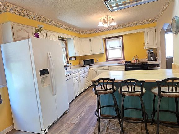 Charming brick bungalow with tons of room. Eat In kitchen with appliances, center island with seating and cabinets for extra counter space and storage! Large living room with sunroom for extra space and quiet space or office. Two bedrooms on main level with 2 (possible 3) bedrooms upstairs. Full basement with wood burning stove that can heat the entire house on cold winter nights! 2 car detached garage and large yard!