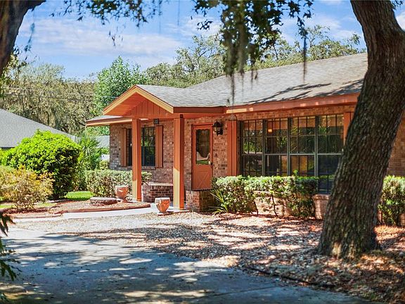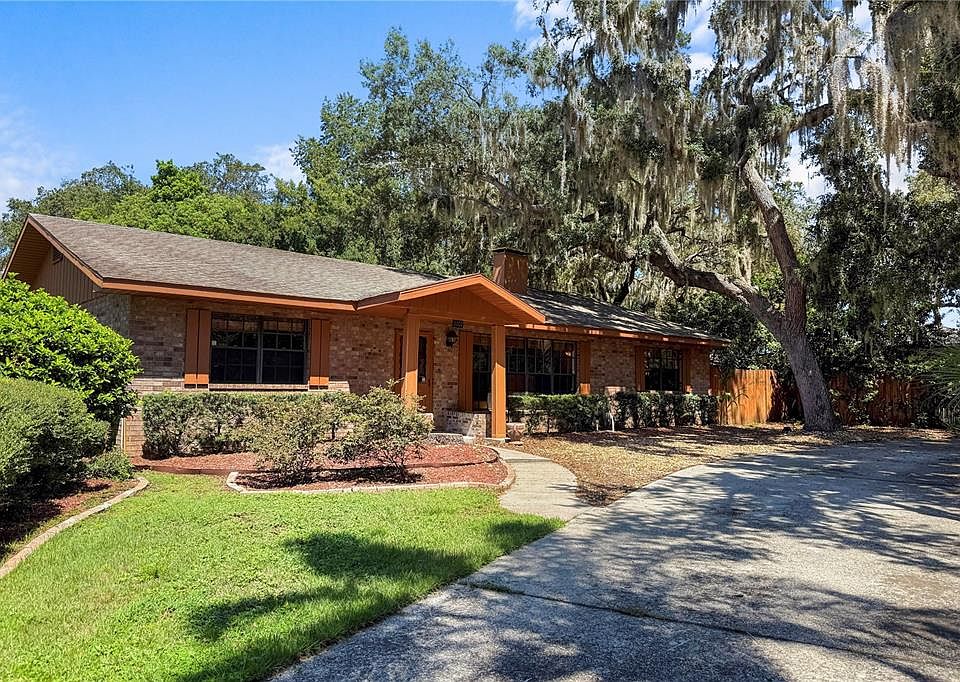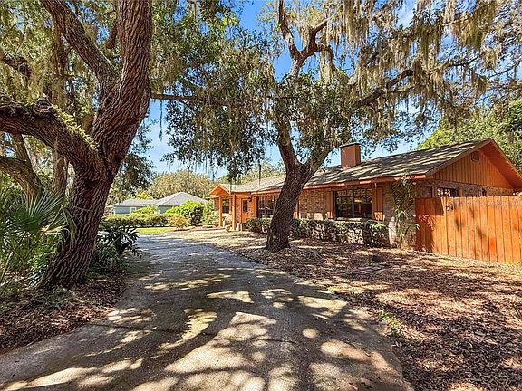 Welcome to the delightful little town of Howey in the Hills! A quaint community nestled between Clermont and Tavares. Just around the corner from the historic Howey Mansion, this spacious 1978 ranch style home has 2,366 square feet of living space, sits on a 1/3 acre corner lot and has no HOA! The circular drive has nostalgic oaks and mature landscaping framing the vintage brick and hardwood exterior. Quality of construction and of course location are the home owners favorite features about his property. We encourage you to look in the attic at the hearty wood slats and craftsmanship of this time, definitely not cookie cutter! Currently a more masculine vibe, but don’t overlook the bones of this expansive layout to create a transitional, classy space. The rooms are large and the possibilities are endless. An original stone fireplace adds a rustic appeal and real wood fire warms most of the living space! The hearth is a cozy spot to sit and the mantle spans the wall to display your favorite things! The home has 2 primary bedrooms with ensuite baths, huge closets and ample windows. The 3rd bedroom option measures 25 x 15, located just off the kitchen. Currently used as a family room and storage, super cozy with tongue and groove ceilings, antique furnace and access to the screened porch. The laundry/hobby room could also take on another purpose, point being the square footage is there to create the space you need inexpensively. The main great room is massive, with large built-ins hiding even more space! The kitchen is positioned perfectly to enjoy everyday activities with tons of room to expand! Great the way it is, but why not capitalize on the potential of your next investment?! The rear entry garage means an extra driveway and a private place to tinker and do projects! You will also be sharing a zip code with the world-famous Mission Inn Resort, this means you are literally minutes away from a full service spa, (2) 18-hole golf courses and 4 specialty restaurants! A wedding destination for some will just be Sunday brunch for you and your family! Another special treat is the Yalaha German Bakery! Properly named Lake County, “Howey” sits along the shores of the Harris Chain of Lakes. Whether you’re into boating or fishing, you’ll love the ability to visit different cities and even access the intracoastal waterway! A favorite stop is Historic Downtown Mount Dora, a destination city for boutique shopping, dining at restaurants like The Goblin Market and Pieces Rising and events year round! HVAC 2018, water heater 2021, Drain Field 2021, tile and carpet. Florida’s Turnpike is just 5 miles away on Hwy 27 with convenient access to Winter Garden and Greater Orlando.