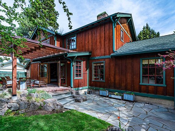 This iconic craftsman, located on a private corner lot just west of the Deschutes River & downtown Bend, is easily accessible to the local businesses along Galveston & Newport Ave. Exuding charm, the home features beautiful wood frame windows, wood floors, built-ins, & an open floor plan. The great room is light & comfortable, with a small den/office to one side. The remodeled kitchen, with cherry cabinets & refinished concrete counters, has a large island, a focal point for entertaining. The dining area extends out to the patio on the side yard, letting the outside in. The main level also has a spacious bedroom, a full bathroom, a large mudroom with access to the cellar, plus a laundry. Family room with vaulted ceilings & reclaimed barnwood floors is upstairs, along with the large master suite & third bedroom. Mature landscaping creates peaceful outdoor living in both the front yard and the fully fenced side yard. The detached studio can be converted into a garage. The best of Bend!