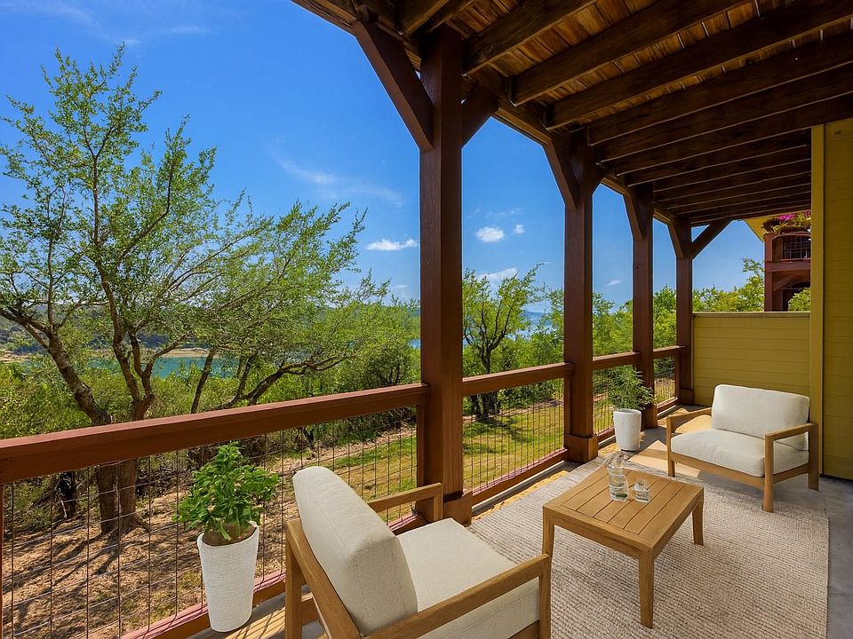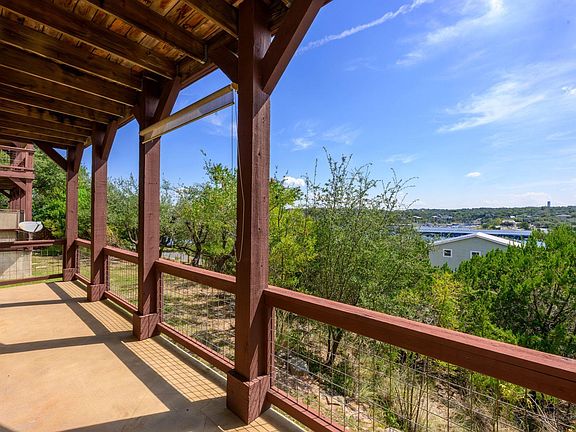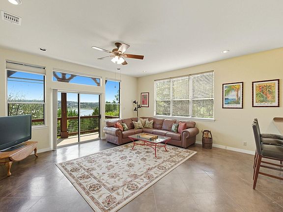 Lake Access, Treetop Setting, and Expansive Views! With a private easement just steps away to Lake Travis, you can paddleboard, fish, or cruise on the boat right from your neighborhood—making this 3-bedroom, 2-bath condo a true lake retreat. Move-in ready, it offers the perfect blend of comfort, convenience, and views. Fresh light paint, wood floors in the bedrooms, and scored/stained concrete in the main areas create a timeless, low-maintenance finish—no carpet anywhere. Bathrooms feature refreshed cabinetry in calming, lake-inspired blue tones, while the large primary suite includes dual vanities and a walk-in closet. A cozy wood-burning fireplace anchors the living room, and the covered outdoor patio is ideal for relaxing or entertaining while enjoying northwest-facing sunsets and breezes. As a first-floor, end unit, the home offers easy access, a private entrance, and plenty of parking—all while nestled in a natural treetop setting with expansive water views. Beyond the lake, you’ll love nearby Lakeway City Park with trails for hiking, picnic areas, and pet-friendly amenities. The HOA covers exterior insurance, outdoor maintenance, septic, and trash—making this a true lock-and-leave option. With exemplary Lake Travis ISD schools, LOW taxes, and a quiet niche location tucked into the back of Lakeway, this home combines everyday convenience with resort-style living. From lake access at your doorstep to park amenities nearby, it’s a serene, retreat-like lifestyle where every day feels like vacation.