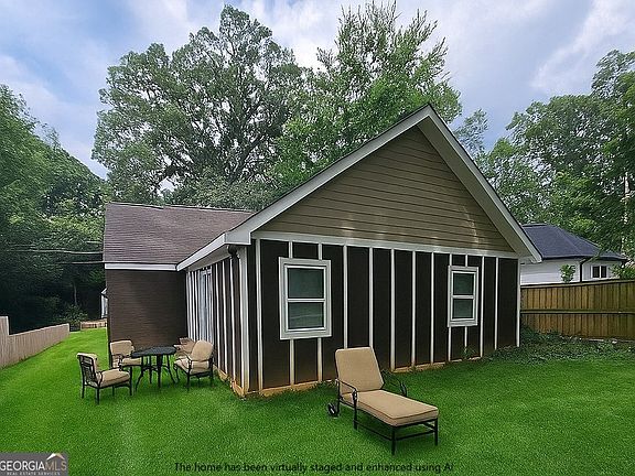 Discover this fantastic value in the heart of Lakewood, offering quick access to major freeways, downtown Atlanta, parks, and the Atlanta Beltline. A welcoming rocking-chair front porch sets the tone, leading you into an open-concept layout with a spacious living room and a separate dining area. High ceilings and abundant natural light create the perfect atmosphere for entertaining family and friends. The oversized primary suite is a true retreat, featuring dual granite vanities with elegant gold fixtures, a walk-in shower with custom tile and double shower heads, and a large walk-in closet designed to fit your wardrobe with ease. Two additional guest bedrooms share a beautifully updated bath with marble tile and a European-style tub/shower combination. Recent updates include new LVP flooring, fresh interior paint, a new roof, new windows, and a new water heater-providing peace of mind and a solid foundation. The home does require some finishing touches: the kitchen needs additional cabinets, counters, and appliances, while the bathroom will need final completion. With nearby homes demonstrating strong values, this property presents a unique opportunity to build instant equity with a little TLC. It's an ideal candidate for a small renovation loan (not eligible for FHA or VA), allowing you to personalize and complete the home to your style. Don't miss out on this incredible investment and lifestyle opportunity! Note: Photos have been virtually staged and enhanced with AI.