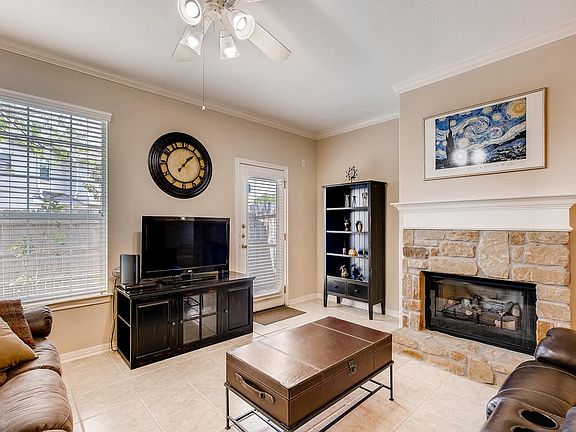 Every REX home comes with a 30-day buyback guarantee. Terms and conditions apply. Schedule your appointment with REX for a same day showing. Gorgeous, move-in ready townhome with 3 bedrooms, 2.5 baths, and 1,505 square feet in the Bella Terra Condo Community in Northeast Austin! Fantastic amenities include a gated community pool with covered outdoor barbeque area. Fantastic open floorplan with large windows and lots of natural light. The living room faces the outside patio and includes an access door, porcelain tile floors, gorgeous gas fireplace with stone surround, ceiling fan, and crown molding. Modern open kitchen with rich wood cabinets, large center island with seating, solid surface countertops, separate pantry, stainless steel appliances including a 4-burner gas stove with microwave above, and a large picture window above the sink. All of the bedrooms are quite spacious with plush carpet flooring. The luxurious master suite includes a walk-in closet, large windows with stunning views, and a beautiful en-suite with dual sinks with cultured marble countertop, separate shower, and a giant spa tub. Bedroom 2 features built-in shelving and bedroom 3 features a lovely window seat and walk-in closet. Upstairs hall bath with porcelain tile and a shower/tub combo. Quaint fenced-in patio area with planters and seating area, perfect for outdoor dining. Ample storage throughout including coat closet at entry, upstairs linen closet, and attached two-car garage for additional space. Laundry in unit. Central A/C. Refrigerator, washer, and dryer convey. Monthly HOA covers gas, water, all exterior building and yard maintenance, and pool upkeep. Great location near acclaimed Pflugerville schools, major retailers, and restaurants. Easy commute to downtown and the North Austin Corridor, shopping at HEB, Domain, Walnut Creek Metropolitan Park, and convenient to major employers including Samsung, Applied Materials, Dell, and GM. Get ready to live the good life in Austin! Schedule a showing with REX today.