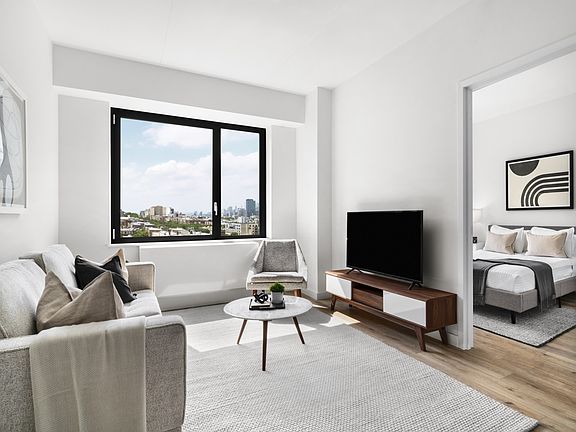 In-unit washers and dryersModern matte black hardwarePrivate outdoor balconiesSprawling views across brooklyn