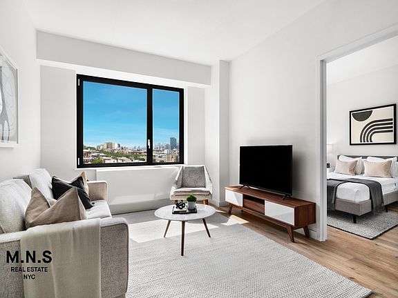 In-unit washers and dryersModern matte black hardwarePrivate outdoor balconiesSprawling views across brooklyn