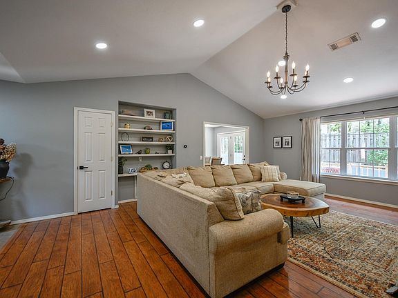 Beautiful brick home in Timber Ridge East! This well-maintained property offers a great floor plan with a spacious living room featuring built-ins. The kitchen has beautiful cabinetry and a large adjoining utility room for extra storage and convenience. Enjoy newer flooring throughout, including brand-new luxury laminate in the bedrooms. Recessed lighting, fresh paint, and updated hardware give this home a modern feel. The main bathroom features a relaxing jetted tub. Step outside to a nice deck overlooking a privacy-fenced backyard with a storage building. Additional features include an attached garage, a new roof (2021), and a new air conditioner (2023). Move-in ready and full of charm!