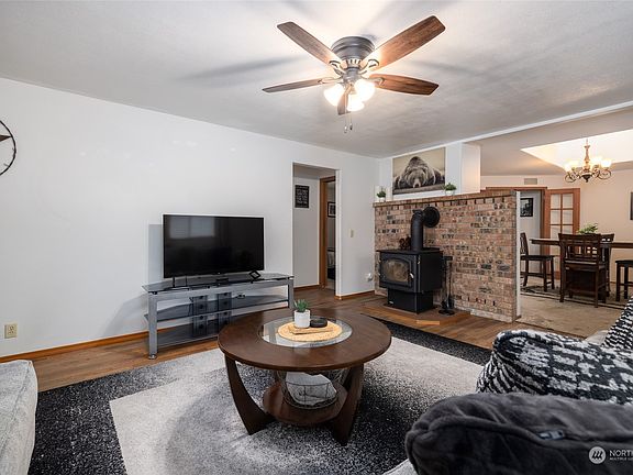 Hurry—bring your marshmallows and make this charming rambler your cozy retreat! Nestled on a fully fenced, oversized lot, this home boasts a layout designed for comfort and connection, with spaces perfect for enjoying hot chocolate (or any warm treat). Relax in the private primary wing, sipping cocoa as you take in the peaceful backyard views through the slider. Two additional bedrooms and a full bath are thoughtfully positioned off the inviting living room, where the woodstove adds extra warmth. Whether you're savoring your cocoa on the front porch, in the Northwest Room (a 240 sqft covered back deck), or anywhere else on this private property, this home offers the perfect setting to make every season special. Don't miss it!
