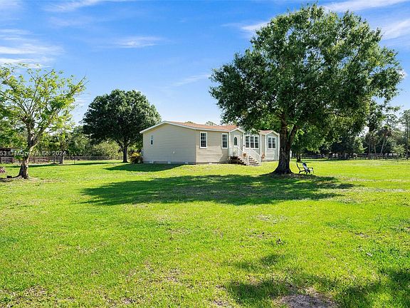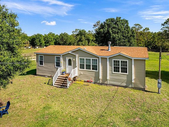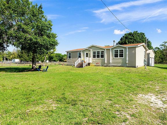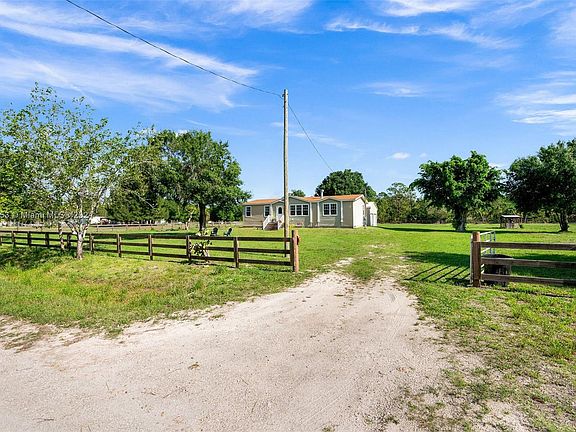 Well-positioned for convenience to outdoor recreation! This appealing home is a special treasure on 2.5 Acre Land. Within, you'll find hardwoods throughout, neutral decor, and a wood burning fireplace in the living room. With ample room for food prep, the island kitchen brims with fresh updates, stainless steel premium appliances, and upgraded cabinetry. The primary bedroom includes a walk-in closet, sitting space and bathroom with dual sinks. Detached two-car garage, horse stables, paddocks and storage shed. Situated on very well-manicured property that is fully fenced with three-rail fencing. Water well with filter. All furniture may be included. Short drive to Lake Okeechobee, Restaurants, Shops. Vibrant market, prime listing, move fast.