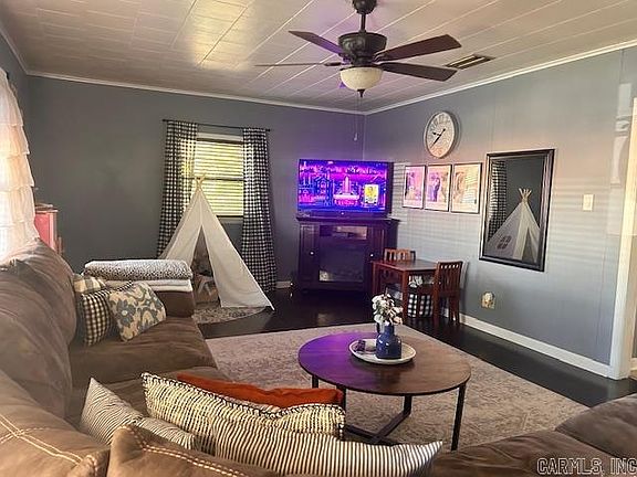 This is a very affordable 3-bedroom, 2-bathroom home. The wooden exterior is awesome. The carport is long, and it actually has a sitting area. The back yard is very large as well as fenced. The covered deck is a wonderful entertainment area. The interior of the home is nice and clean. The 3 bedrooms (one being a master suite) are large and placed well throughout the home. The kitchen in separate from the living room by a walkthrough doorway. The original but refinished wood floors are located in the living room.