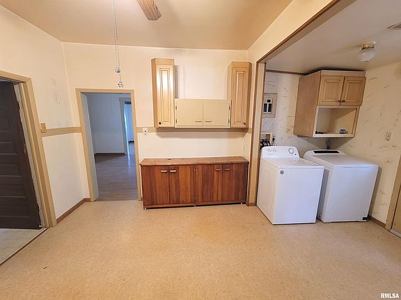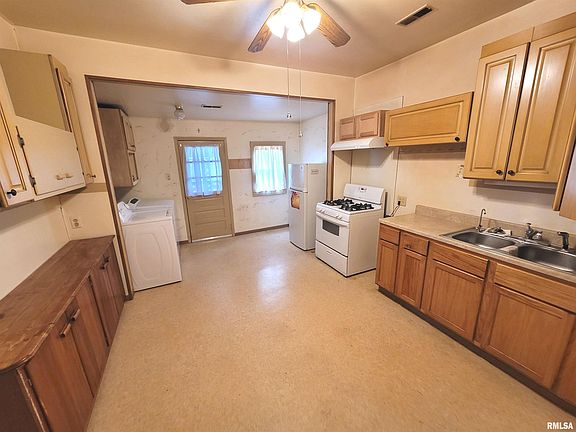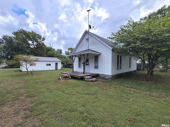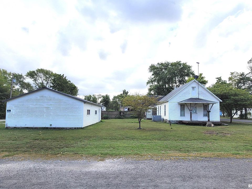 Cute 2 bedroom bungalow on nice big corner lot. Huge 2 and half car garage measuring 24’x30’ with 2 overhead doors and alley access. Plenty of extra storage and workshop space. Large yard and covered front and side porches. Tall ceilings creates an big open feel with connecting living and dining rooms. Sizeable kitchen as well with nice buffet area and easy access laundry area. Room for island or work table. Heat and cool less than 3 years old. New water heater in 2025. Appliances, washer and dryer included. Move in ready!
