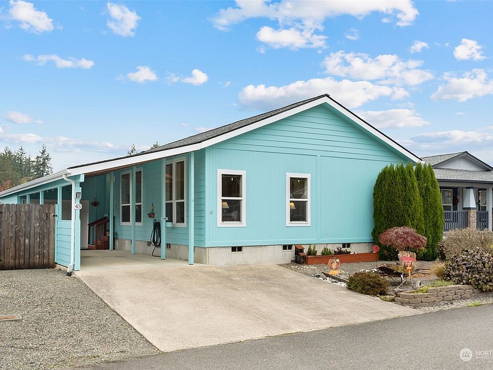 Charming 3-bed, 2-bath home in a vibrant 55+ community! The home features a spacious living room w/vaulted ceilings & water-resistant Pergo floors. Kitchen is equipped w/eating bar, center island, & pantry, making it easy to prepare meals. Primary bedroom boasts a walk-in closet & en suite bath w/soaking tub & shower. All bedrooms have walk-in closets! 2 storage sheds provide ample room for belongings, and the workshop w/decorative garage door provides additional storage. Carport, partially fenced, fresh exterior paint, new roof, & new water heater. Plus, you get to enjoy access to a variety of amenities & activities! Conveniently located close to shopping outlets, hospital, & I-5 access. Call for tour!