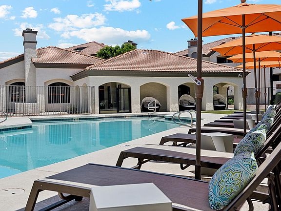- Exterior features: Barbecue, Business Center, Chrome Lighting & Hardware, Offering 1 & 2-Bedroom Floor Plans, Online Services & Payments Available, Outdoor Daybeds, Self-Guided Tours Offered Daily, Spacious Courtyards with Seating, Stucco, Two-Tone Color Schemes