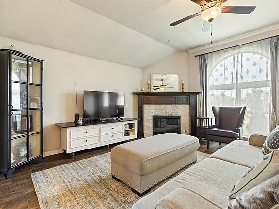 OPEN HOUSE - Sunday Jan 12th 2:00 - 4:00. Must see this beautiful 4-bedroom, 2.1-bath home nestled in a peaceful cul-de-sac in the highly desired Palermo Place. Just inside the front door is a spacious open concept living room with 10 ft ceilings and a gas fireplace creating an inviting space for entertaining guests. Well-designed kitchen arranged between two dining areas features quartz countertops, custom wood cabinetry, stainless steel appliances, and a large breakfast bar. Second dining area by laundry room could be used as a hobby/craft area, homeschool study space, or office. All bedrooms are located at the back of the house allowing for maximum privacy. A cozy family den separates the master suite from three other bedrooms. The master en-suite includes a large walk-in closet, double vanities, separate garden tub and tiled shower! Relax on east and north facing patios with custom built pergolas, ideal for a morning coffee or an evening glass of wine. In-ground storm shelter in 3rd bay garage floor. 7’ X 7’ shed in back yard stays. Palermo Place ensures easy access to major retailers, restaurants, and entertainment venues along I-35, with a short commute to the Oklahoma City metro area & Norman. Neighborhood amenities include paved walking trail, playground, pool, clubhouse & fitness center. Also across the street is the new YMCA Health & Wellness center. Vivint security system including indoor motion sensor, driveway and doorbell cameras, and window and door sensors throughout to remain with strong offer