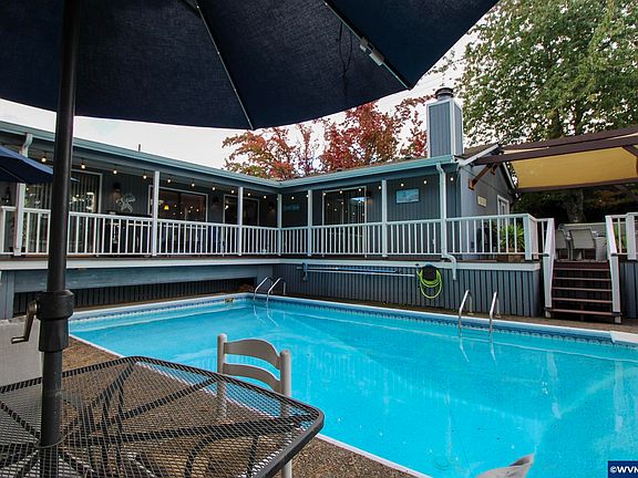 Open Beam Ceilings in Living Room, Dining Room & Master Suite. Light & Bright Vaulted Living Room with Lots of windows and gas fireplace. Bay window in Dining room. Spacious kitchen with Jenn Air Island Cooktop, lots of counter space, custom cabinets and nook. Primary Suite with gas fireplace, French doors to deck and lg hot tub, currently being used as a Family/Bonus Room. 16x32 Inground swimming pool
