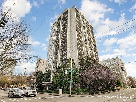 Enjoy breathtaking city views from this bright corner unit with floor-to-ceiling windows and four private decks. The open layout features a spacious living/dining area, ample storage, and two bedrooms, including a primary suite with an elegant full bath. HOA dues (~$1,100/month) include all utilities, security, & common area maintenance. Residents enjoy exceptional amenities, including an indoor pool, fitness center, sauna, hot tub, clubhouse, and on-site management. This secure, gated community offers covered parking, extra storage, and a prime location near downtown, Broadway, parks, restaurants, and transit.